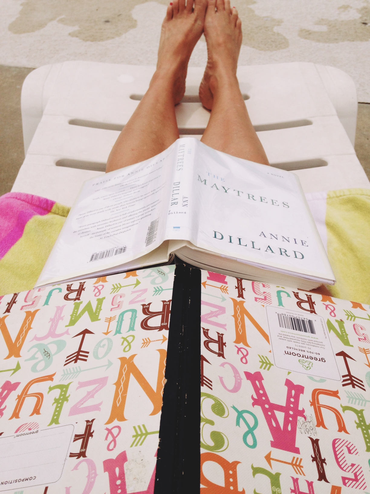 This year it was much more like a knock down drag-out argument. After much pleading and hurry-uping from my daughter, I just picked one, shoved myself into it and drove away. Thankfully, there weren’t yet that many crazies at the pool on that 73 degree day.  Caroline and I strode in like we owned the joint, plopped ourselves down by the pool and breathed deep.