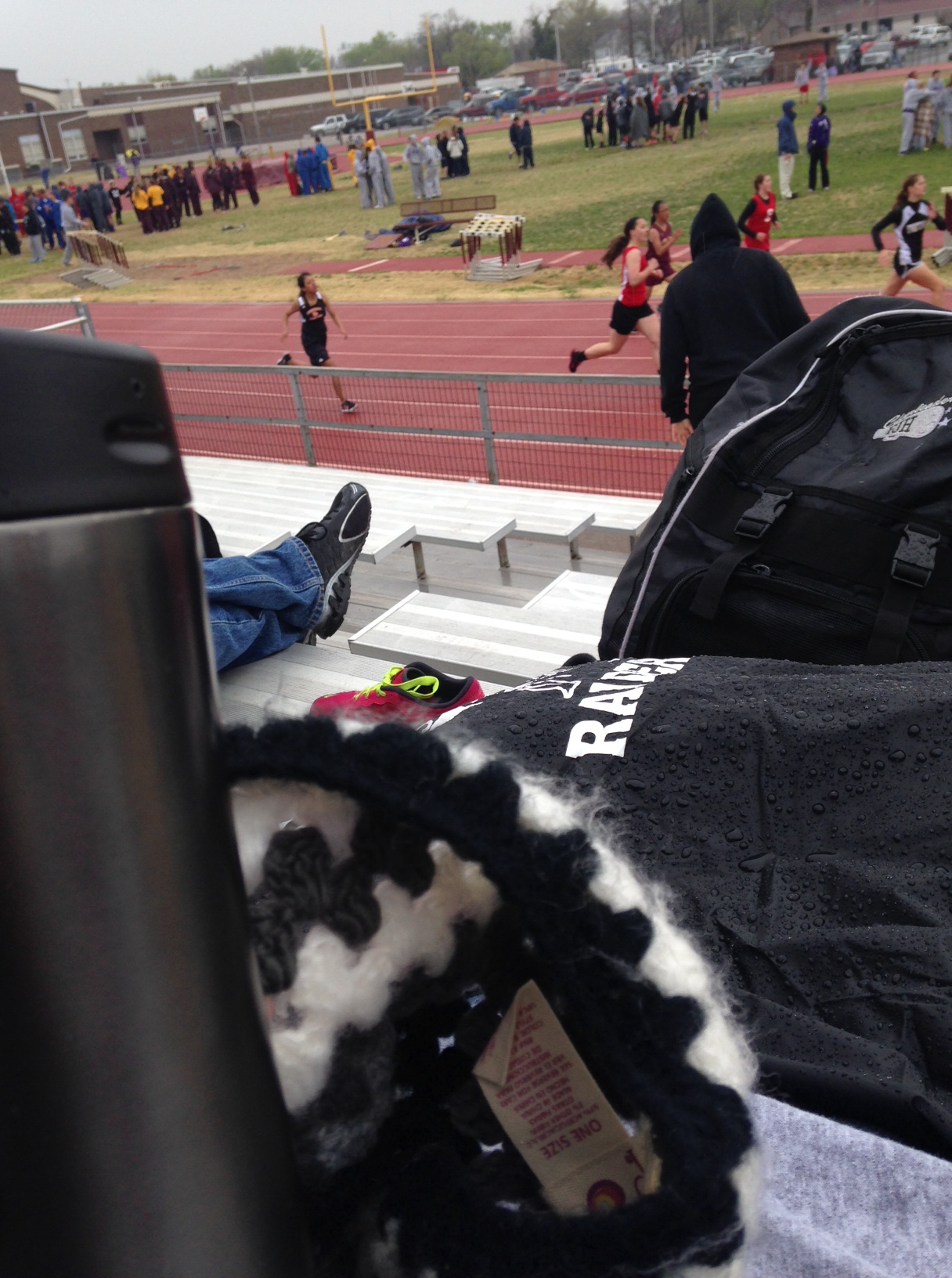You see girls try to stay unsuccessfully adorable while battling rain, wind or snow. Because track meets are NEVER scheduled on those beautiful 70 degree sunny spring days. It’s either blazing hot, freezing cold or blowing 400 mph, usually a combination of all the above.