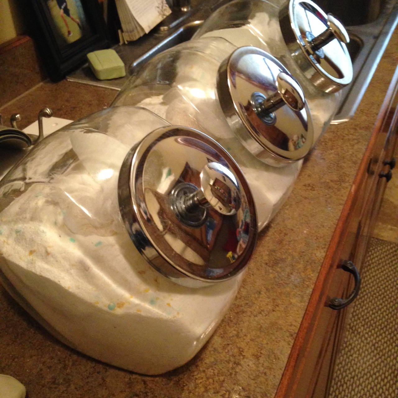 With bloody knuckles from grating the remaining 1/2 bar of devil soap, I attempt to “stir” the 15 pounds of powder. I can’t remember how I stirred or grated all that soap last time. This time I end up with a trash bag lined garbage can. Also, there is no spoon big enough for a job this large. So like a paddle in a churn, I dig into borax and baking soda and soap shards up to my elbows. I realize I’m breathing this stuff in and start to feel light-headed. Man, this stuff tastes bad. Can you get high on this stuff? Immediate flash back to the day Trace started kindergarten and I was cleaning out the garage closet to clear away the sadness, swept powdered rat poison on to my face, had a panic attack and called 911.